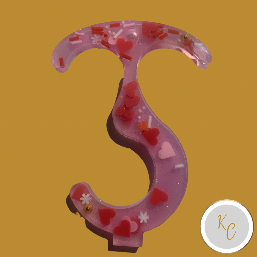 A whimsical design of pink and red hearts, white, red, and pink sprinkles, gold and white pearls. Bring the love to everyday with hearts and hooks.